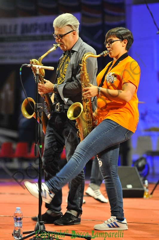 Complici dalla prima all’ultima nota, l’esplosivo connubio tra il sassofonista e la banda travolge gli spettatori in un piacevole excursus tra i più noti pezzi di Cecchini, stringendo a sé il pubblico e coinvolgendolo come difficilmente si riesce a fare.