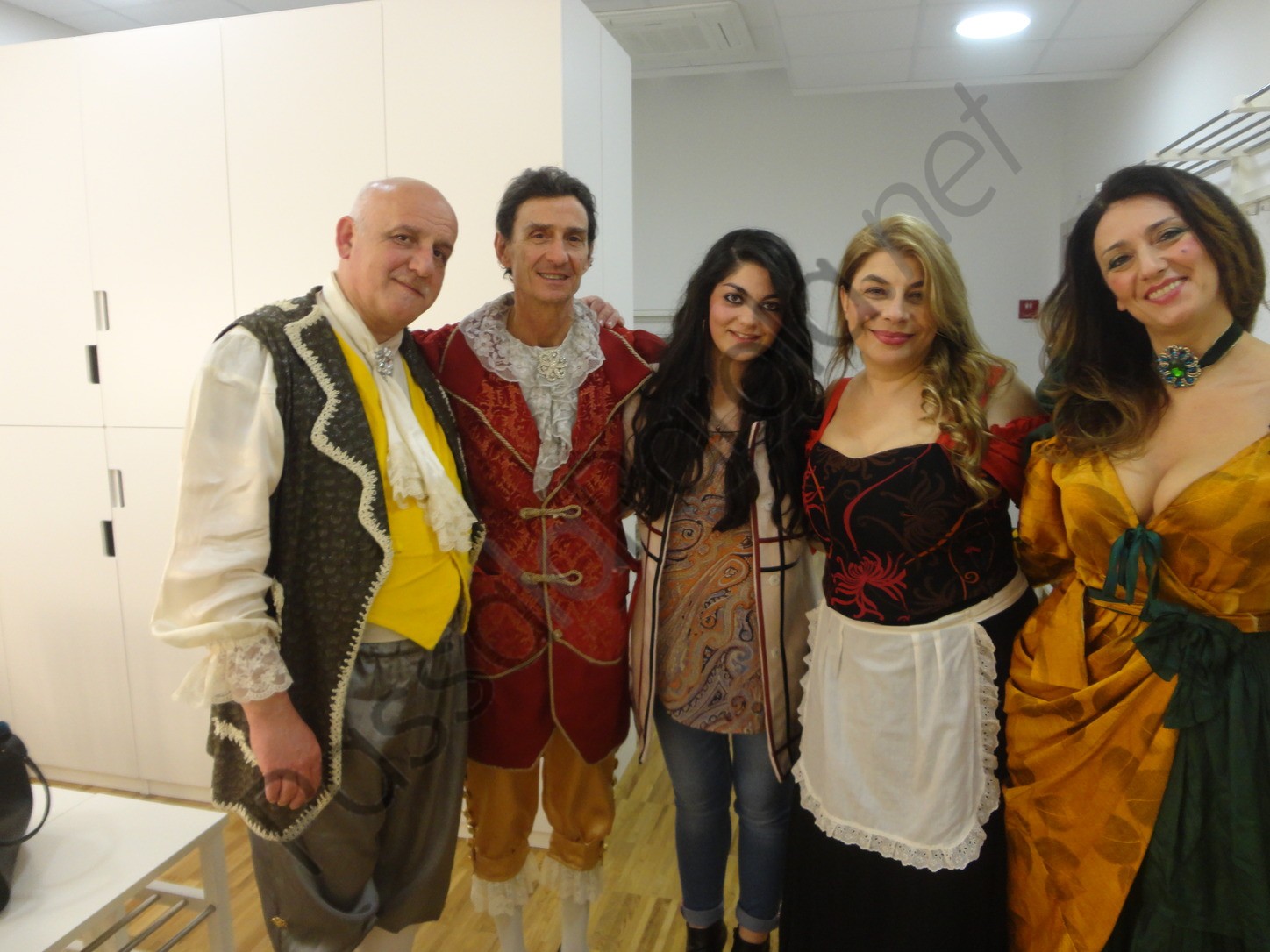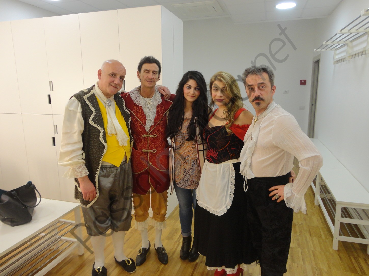 È proprio quella che rappresentiamo noi, perchè ci sono adattamenti ai tempi odierni (come nel linguaggio e nelle usanze), per cui non è molto diversa da un’ipotetica locandiera del 2015. Ovviamente la storia si rifà al passato, però l’energia, i caratteri e i ritmi sono quelli di oggi: vedrete certamente uno spettacolo in costume, ma comunque quello che trasmettiamo è inerente al presente. Ad esempio, la scelta di riportare parti di dialetto barese, provengono dal fatto che noi ci siamo sempre scostati dalla dizione poiché riteniamo che l’attore perfetto sia artefatto, costretto a certi atteggiamenti, mentre noi ci sentiamo più liberi usando il linguaggio colloquiale colorato da battute dialettali, lo slang pugliese insomma: questo ovviamente quando siamo a Bari; invece, quando ci spostiamo al Nord, utilizziamo un linguaggio totalmente italiano con accenti baresi.