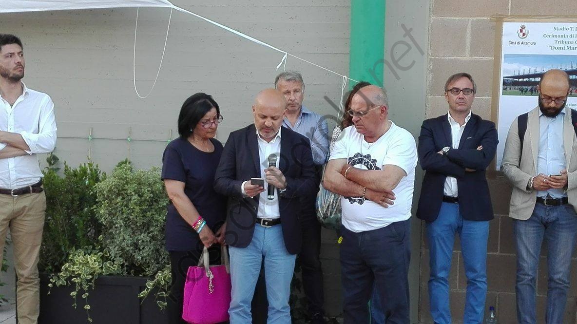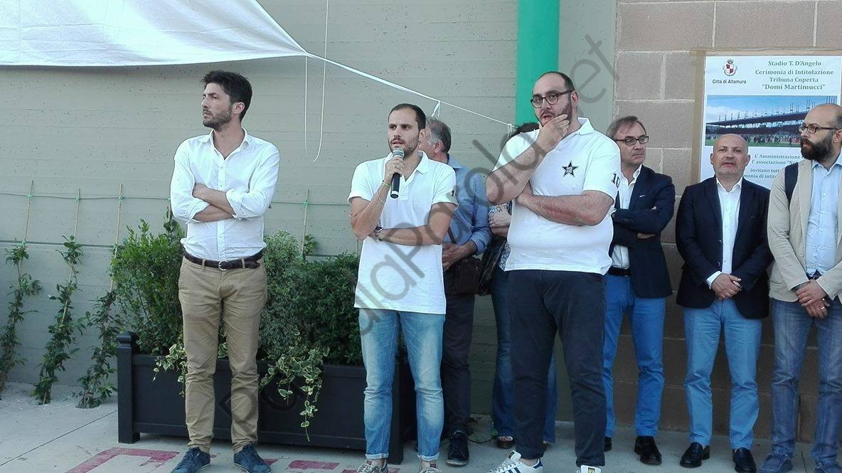 Queste, le parole scolpite sulla lastra di pietra che onorano il nome dell’altamurano Domenico Martimucci: ieri, 30 Giugno, c’è la cerimonia di intitolazione della tribuna dello Stadio Sant’Angelo.