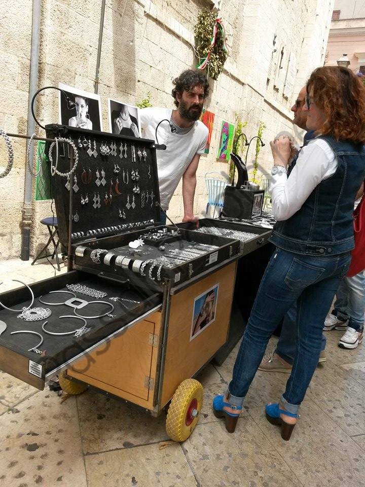Più di 3.000 visitatori hanno affollato le vie del centro storico per “ARTIGIANANDO fiera della creatività e delle arti manuali”, evento ormai consolidato a Bisceglie organizzato dall’Associazione In.Con.Tra. sotto la direzione artistica di Lorena Galantino. Domenica 17 maggio dalle ore 9.00 fino alle ore 24.00 la città di Bisceglie ha accolto gli artigiani e i creativi di Puglia. Circa trenta stand sono stati collocati nelle tre vie principali del centro storico: via Marconi, via Cardinale Dell’Olio e via Frisari, splendida e suggestiva cornice per le opere in bella vista sui banchi degli artigiani. Numerose le tipologie creative presenti: riciclo creativo, candele artistiche, lavorazione delle paste polimeriche, decorazione lumi, arte del bonsai e tanto altro. Molto apprezzati i figuranti di “Notti medievali” di Terlizzi che hanno sfilato in abiti medievali per le vie del borgo. Dalle antiche tradizioni al nuovo che avanza. Raffinati lavori realizzati ad uncinetto da mani esperte hanno strizzato l’occhio alle nuove tendenze. Di particolare interesse artistico le creazioni di alcuni espositori. L’innovativo design dei gioielli in alluminio, argento e oro di Corrado Bove (Corato) che ha portato a Bisceglie la sua linea Poverimabelli. Le splendide lavorazioni di carta pesta di Luigia Bressan (Putignano) che ha esposto maschere di raffinata bellezza e illustrazioni di particolare pregio. Interessanti iniziative sono state intraprese da alcuni esercenti della zona. A catturare l’interesse di piccoli e grandi la Libreria Marconi con i “Racconti in valigia del Kamishibai” (dalla tradizione giapponese). Ad allietare la serata l’esibizione per strada dei musicisti Alex Bufi (alle tastiere) e Paco Baldassarre (al sax) invitati per l’occasione dagli intraprendenti titolari dei locali Rosso Cardinale e Make Art. Puntuale la presenza dei rappresentanti dell’Amministrazione comunale di Bisceglie. Le dichiarazioni a chiusura dell’evento della direttrice artistica Lorena Galantino: “incisivo è stato il connubio tra l’Amministrazione, l’Associazione e i commercianti a dettare la buona riuscita dell’evento”.