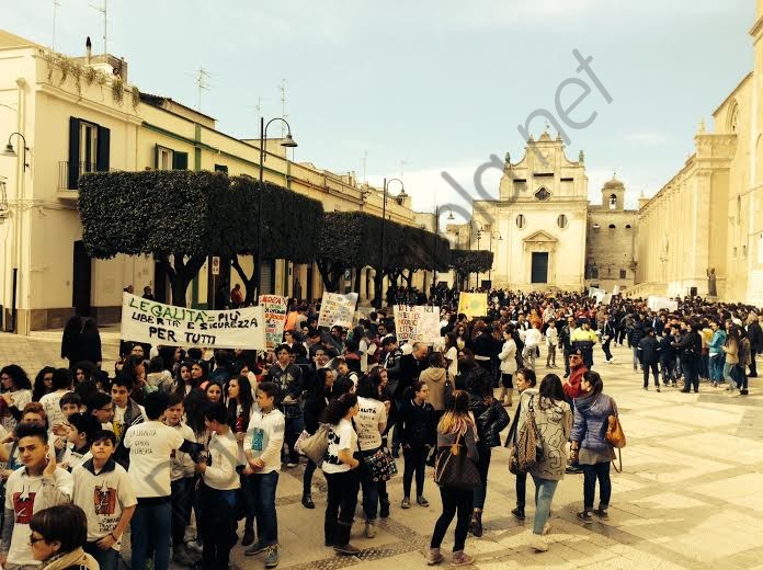 Oltre 5.000 studenti gravinesi in corteo, per le strade di Gravina, durante la mattinata del 22 marzo scorso. La richiesta è precisa e ben definita: legalità, no alla violenza, basta mafie. E’ la voce del futuro, forte e chiara, ad implorare la rivendicazione.