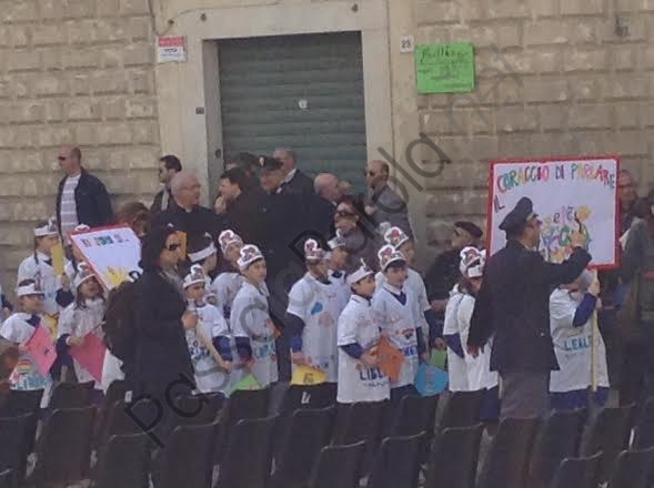 La Primavera gravinese è esplosa in tutta la sua umanità. In marcia con le scuole vi era il sindaco Alesio Valente; Filippo Bubbico, viceministro all’Interno; Antonio Nunziante, prefetto di Bari; la deputata Liliana Ventricelli; monsignor Giovanni Bruno per la diocesi e una piccola delegazione “Noi Ultras” Gravina, ma pochi altri adulti. L’evento, approvato a gran voce, voluto dal sindaco ed organizzato dal Municipio di concerto con la Diocesi e la Prefettura, ha visto piazze gremite di giovani. I giovani di domani. La città murgiana ha dimostrato, così, quanto sia energica, a dispetto di chi la descrive addormentata e piegata su se stessa.